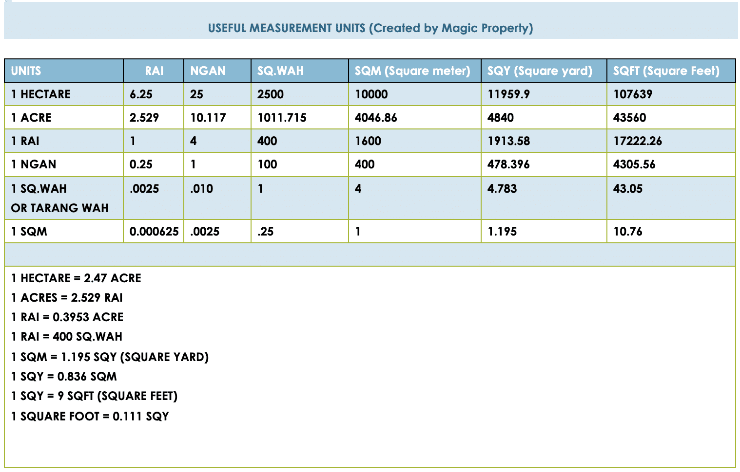Thailand units are used to measure Land Area.