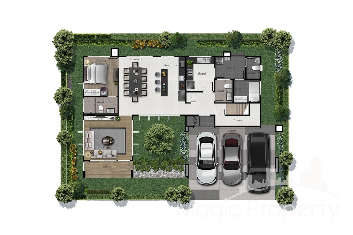Keha Nakorn 3 Village 4 Bedroom Single House For Sale Property Code MGP1923 4 Bedrooms, 3 Bathrooms, 2 Floors Land Size 54 Sq. Wah., Living Area 185 Sq. m. F...