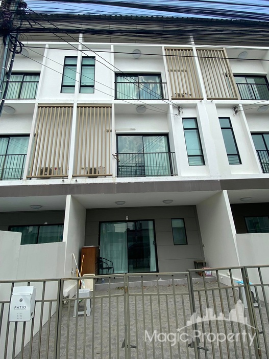 Project Description: Patio Srinakarin – Rama 9 is a 3-storey townhouse project developed by Pruksa Real Estate Public Company Limited, completed in 2016, located on Krungthep Kreetha Road, Hua Mak, Bang Kapi District, Bangkok 10240, comprising 293 units, with each townhouse featuring 3 bedrooms, 3 bathrooms, 2 parking spaces, and conveniently located near Hua Mak Airport Rail Link station.