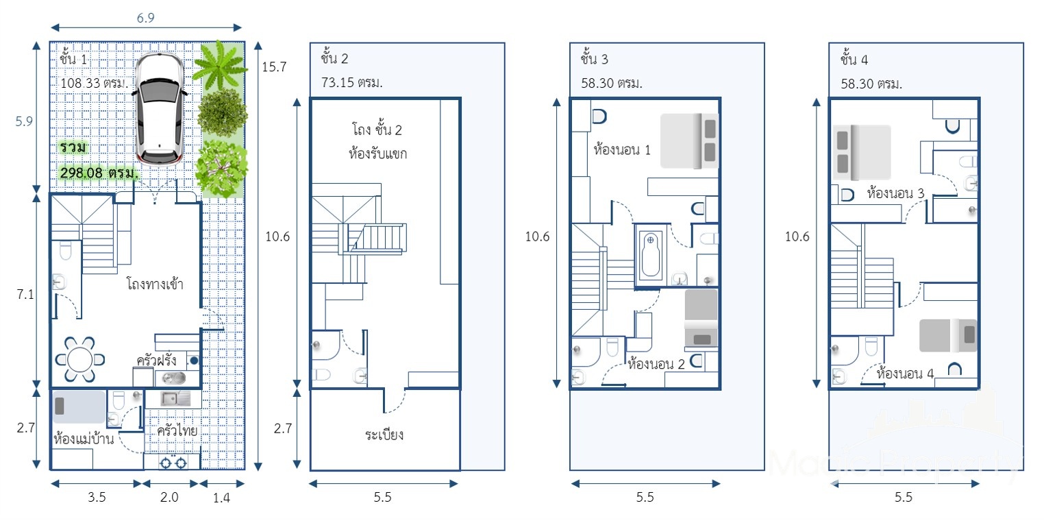 Land size 27 sq.wah, width 6.9 m., depth 15.7 m.